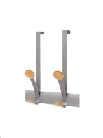 Alba Coat Hooks 2 Double Pegs Silver Grey Steel/Light Wood