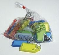 A larger key tag with 50x35mm insert card. Assorted colours - Red, Blue, Green, Yellow, Orange and clear.