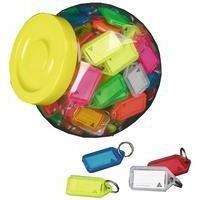 Kevron plastic clicktags with 35x22mm insert card. Cover clicks to secure insert. 19mm stainless steel keyring. Assorted.