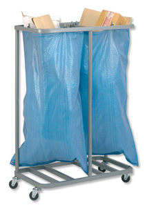 Conveniently holds two sacks in an open position for quick, simple loading of mail Strong steel construction with four rubber-tyred swivel castors for easy moving Holds standard Post Office size sacks Double WxDxH: 790x400x1115mm Silver