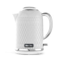 Curved texture design with high gloss finish and chrome accents Illuminated controls for ease of use Fast boil: 3kw Capacity: 1.7 litres Colour: White and chrome