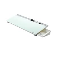 Unique glass desktop panel writing surface and desk tidy