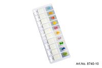 10 Pads in size 12 x 44mm are attached to a transparent plastic-ruler
