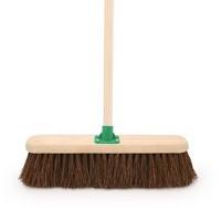 Stiff Bassine 18 Broom with Handle. Support bracket offers extra durability and also allows the handle to be fitted and replaced with ease. The handle is supplied clipped to the head which allows the product to be stored away neatly. 48 handle included