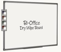Bi-Office Drywipe Board. High quality, double-sided board with a smooth, low maintenance writing surface, 5 colour caps to match your office decor, aluminium trim, pen tray and wall fixing kit. Size - 1800 x 1200mm.