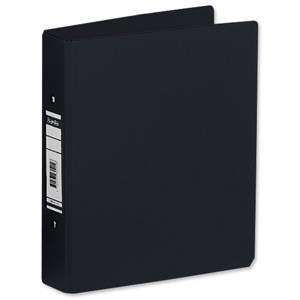 Quality ring binders with a heavyweight PVC covering in a new and improved smooth grain finish, also great for overprinting Two O-ring binding mechanism 25mm ring size Size: A5 Black Packed 10